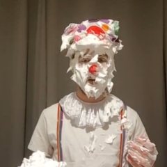 Big Bird the Clown got a shaving cream-filled balloon busted over his head by michiganpie1