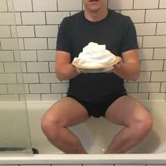 Pieceofcake was surprised by JoshCakeFace with a big sloppy cream pie to the face